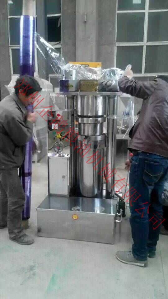 發往廣東一家人食品有限公司的260型不銹鋼液壓榨油機,廠家直銷,質量保證,價格實惠!