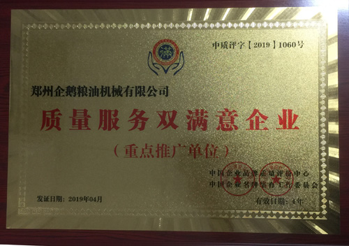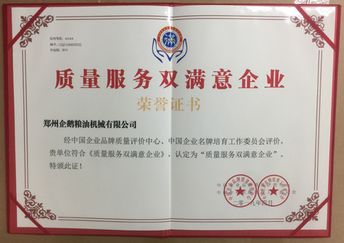 恭賀企鵝榨油機廠家獲得“質量服務雙滿意”稱號